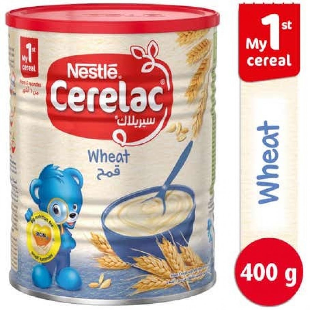 • نستله سيريلاك دقيق الحبوب للأطفال بالحديد والقمح وزن 400غ لطفلكِ بدءًا من عمر 6 أشهر.