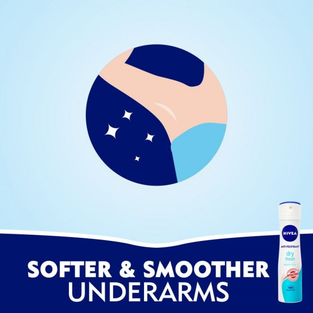 نيفيا سبراي مزيل عرق فريش للنساء 150مل : يمنحك معطر الجسم ومزيل رائحة العرق نيڤيا النشط المبتكر من نيڤيا عطر أنيق يوفر حماية مضمونة تدوم طويلاً،كما أنه يحتوي على تركيبة مبتكرة