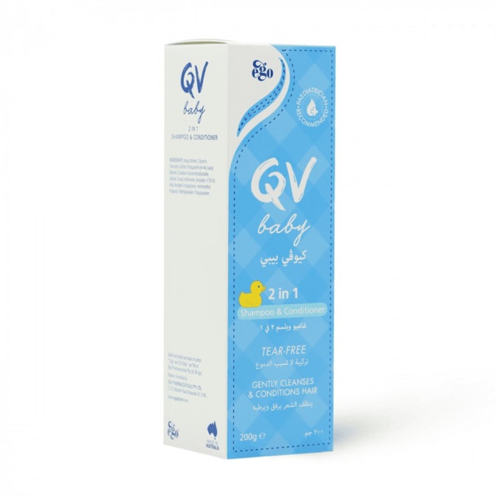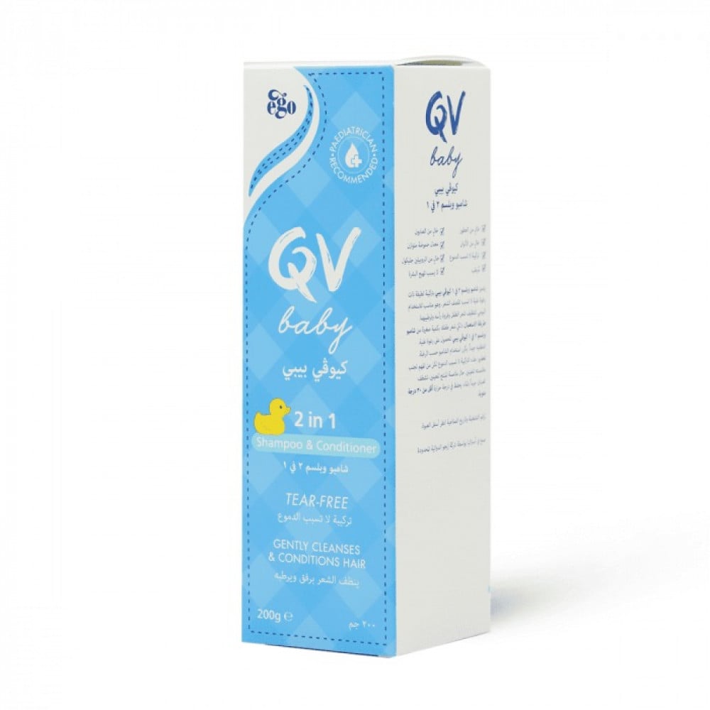 Qv شامبو وبلسم للأطفال 2 في 1 للمساعدة في ترطيب فروة رأس طفلك لشعر أكثر صحة، تركيبة لطيفة لا تسيل دموع الأطفال من كيوفي بيبي - 200 جرام