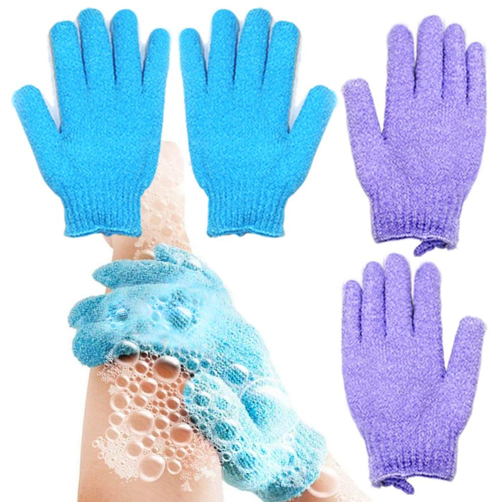 يسهل عليك تنظيف الجلد و التخلص من كل الأوساخ و الشوائب العالقة . قفازات للاستحمام ملونة مصنوعة من نسيج خشن قليلا ليعمل على تقشير لبشرة . لا يسبب التهاب البشرة او تهيجها و لكن احذري من تمريرة عدة مرات على المكان الواحد .
